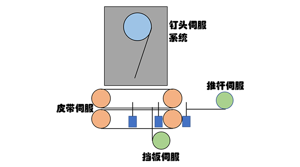 全自動(dòng)粘釘一體機(jī)釘箱部分方案,采用5軸聯(lián)動(dòng)的運(yùn)動(dòng)控制方案,極大的提高了生產(chǎn)效率。