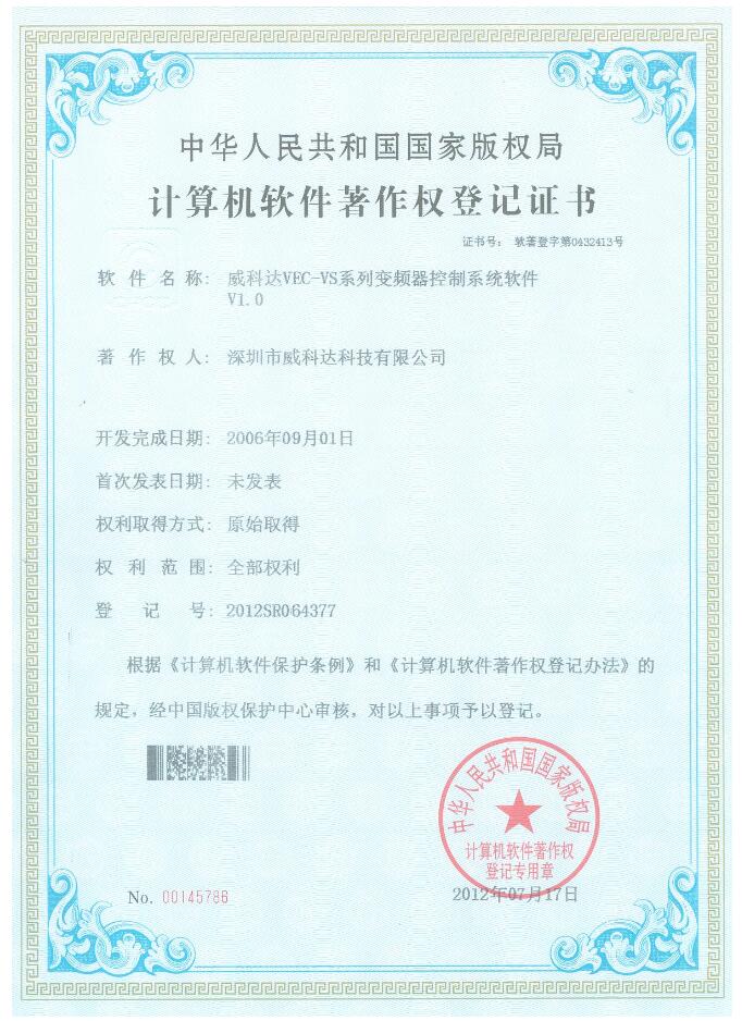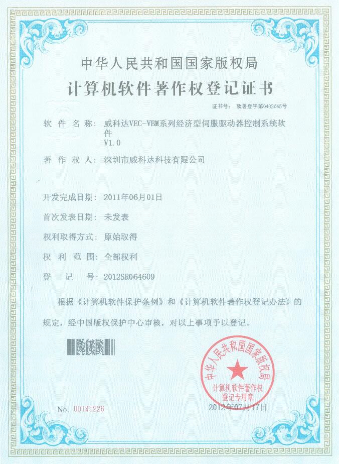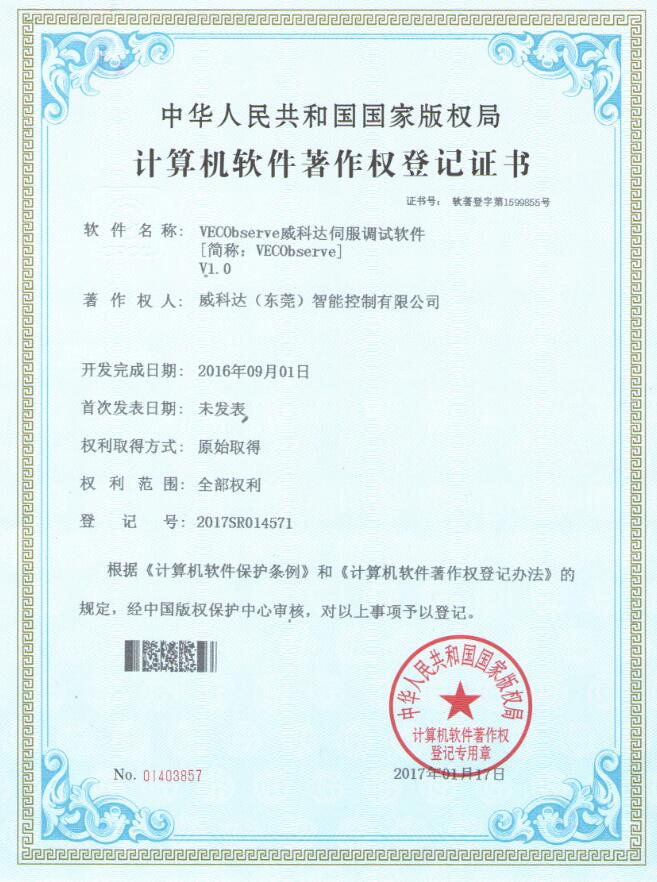 威科達(dá)伺服調(diào)試軟件證書(shū)